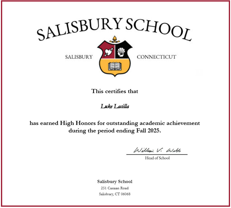 Overall, being a Dorm Prefect has been one of the most meaningful experiences of my time at Salisbury. It has allowed me to grow as a leader, support my peers, and make a real difference in the day-to-day life of the dorm. Every day, I try to lead with integrity and respect while helping build a community where everyone feels they belong.